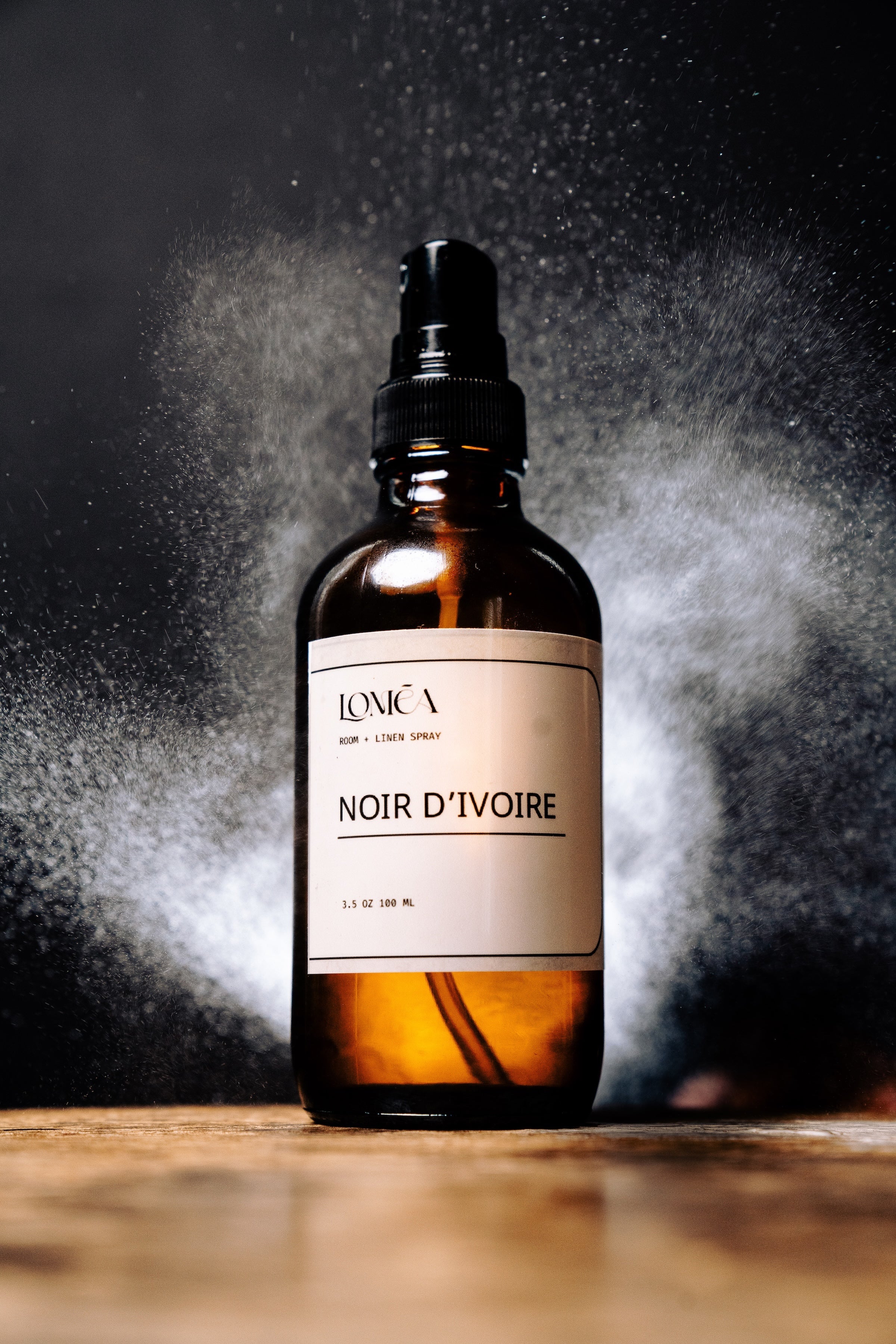 Vessel: Amber glass bottle with fine mist sprayer