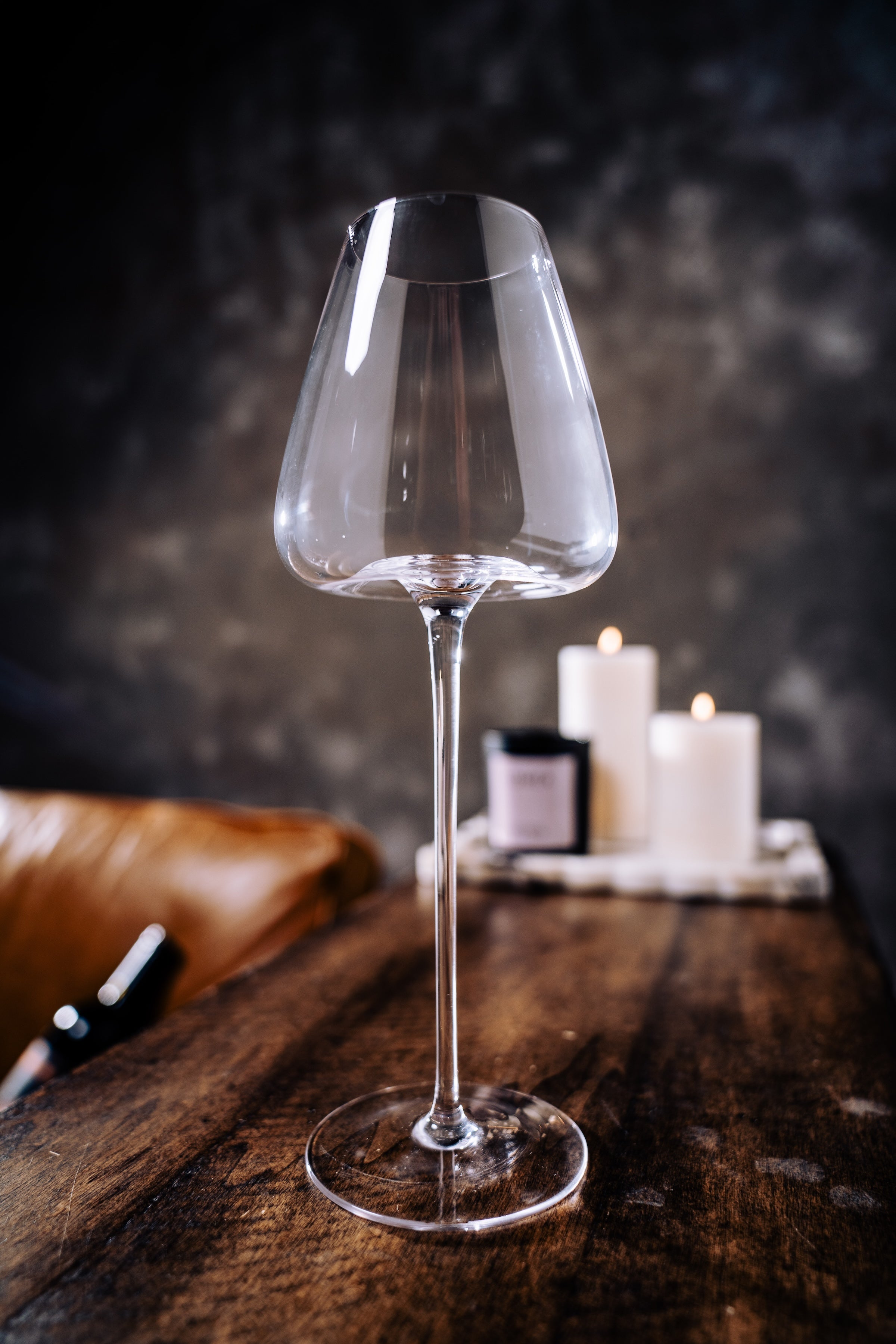 Palmé is inspired by the palm tree, a symbol at the center of Sierra Leonean and Ivorian life. The palm tree represents nourishment, shade, and celebration. With its tall, tapered bowl and gentle curve, the Palmé Wine Glass is sculpted for abundance and designed to hold both bold wines and celebratory cocktails.